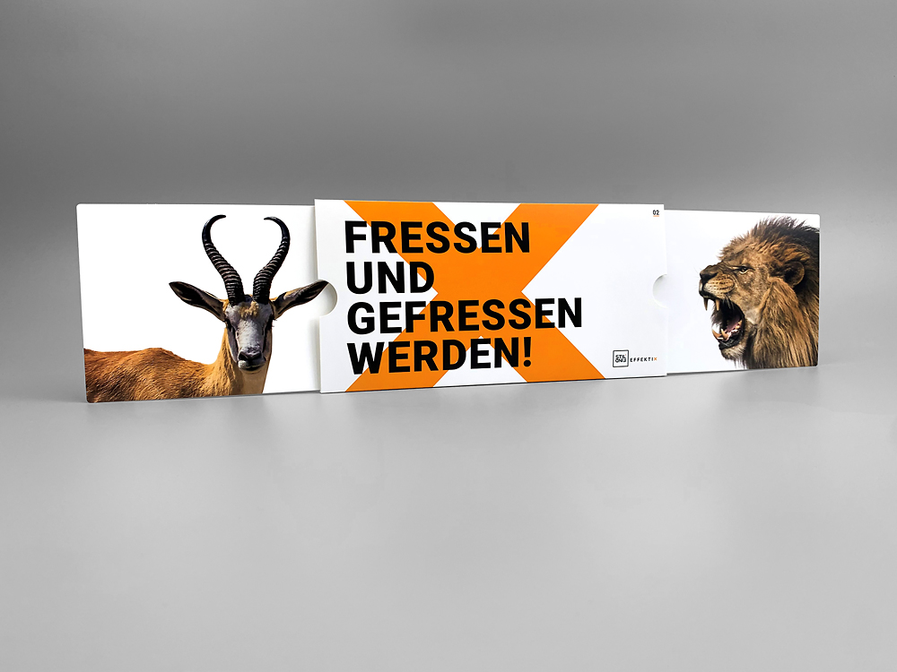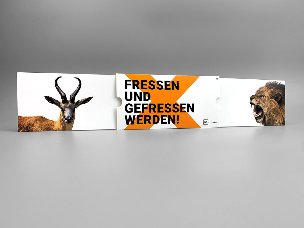 Unsere Doppelziehkarte Klassik ist eine Einladung, deine Mailings auf eine innovative und beeindruckende Weise entdecken zu lassen. Ziehen die Empfänger an einer Seite der Karte, werden sie erleben, wie sie sich in beide Richtungen in ein atemberaubendes Panoramaformat verbreitert. Egal, ob sie nach links oder rechts ziehen, die gegenüberliegende Seite bewegt sich synchron mit und es entsteht ein beidseitig erweiterbares Motiv. Der komplette Mechanismus ist elegant im Inneren der Karte verborgen und entfaltet sich, um das Dreifache der ursprünglichen Fläche zu erreichen. Die Doppelziehkarte Klassik ist ideal für Direktmailings, Produktpräsentationen oder Einladungen, die den Betrachter beeindrucken und lange in Erinnerung bleiben sollen.