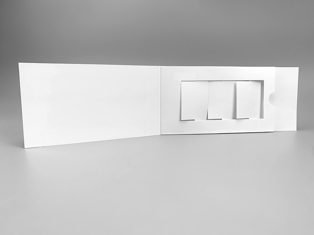 Nutze den Reiz beweglicher Elemente mit unserer Jalousiekarte mit Klappe! Diese Karte bietet eine aufregende Überraschung, da sich beim Öffnen drei bewegliche Elemente um 180 Grad drehen und so ein Wechselmotiv offenbaren. Deine Botschaft bleibt hinter den Elementen verborgen und zieht beim Aufklappen die Aufmerksamkeit auf sich. Sobald die Lasche zurückgeschoben wird, kehren die Elemente in ihre Ausgangsposition zurück, bereit für die nächste Enthüllung. Dieser Mechanismus ist perfekt für Gewinnspiele oder alle Arten von Prämien, die du kommunizieren möchtest. Probiere es jetzt aus und beeindrucke deine Empfänger mit dieser interaktiven und einzigartigen Karte!